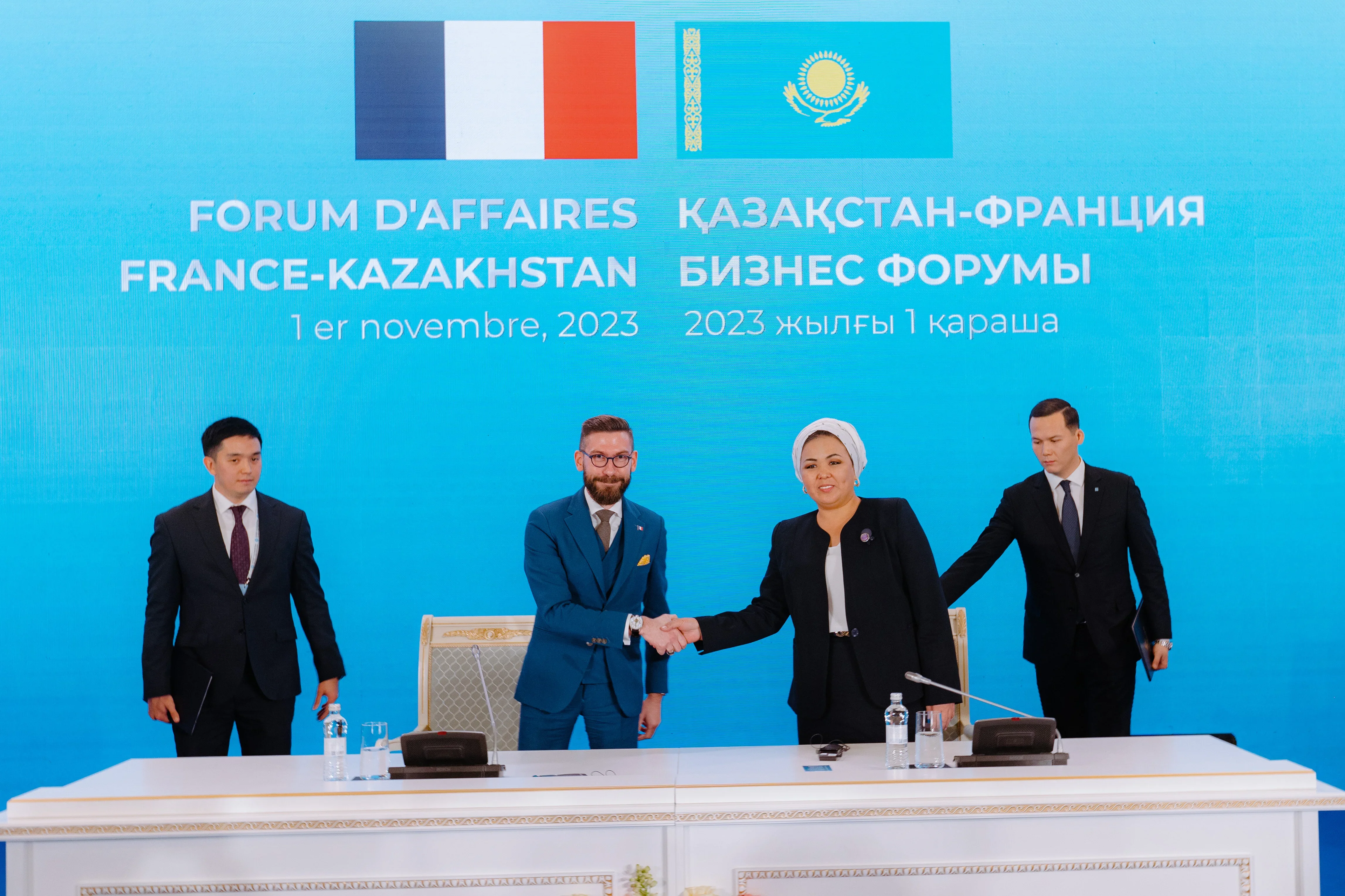 هذه الزيارة الرسمية مكّنت العديد من الشركات الكازاخستانية و الفرنسية من توقيع عقود تعاونية و تجارية بين البلدين. حضور السيد أوليفييه باتش، وزير الدولة المفوض لدى وزير أوروبا و الشؤون الخارجية، المسؤول عن التجارة الخارجية و جاذبية الإستثمار و الفرنسيين بالخارج، و السيد رولاند لسكور، وزير الدولة المفوض المكلف بالصناعة، عكس بشكل قوي دعم الدولة الفرنسية على أعلى مستوى للشركات الفرنسية في سياستها و تطلعاعتها الخارجية للتصدير.